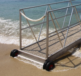 Ειδικές ρόδες, άνευ αεροθαλάμου, οι οποίες προστίθενται στο πλαίσιο του διαδρόμου για την κύλιση στην ακτή.