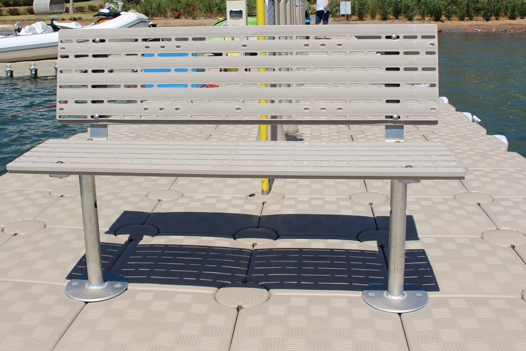 Παγκάκι από ανοξείδωτο ατσάλι 316 με πλαστικό κάθισμα και πλάτη σε χρώμα που συνδυάζεται με την πλωτή εξέδρα. Χρώμα: Μπεζ *Διατίθεται και σε γκρι