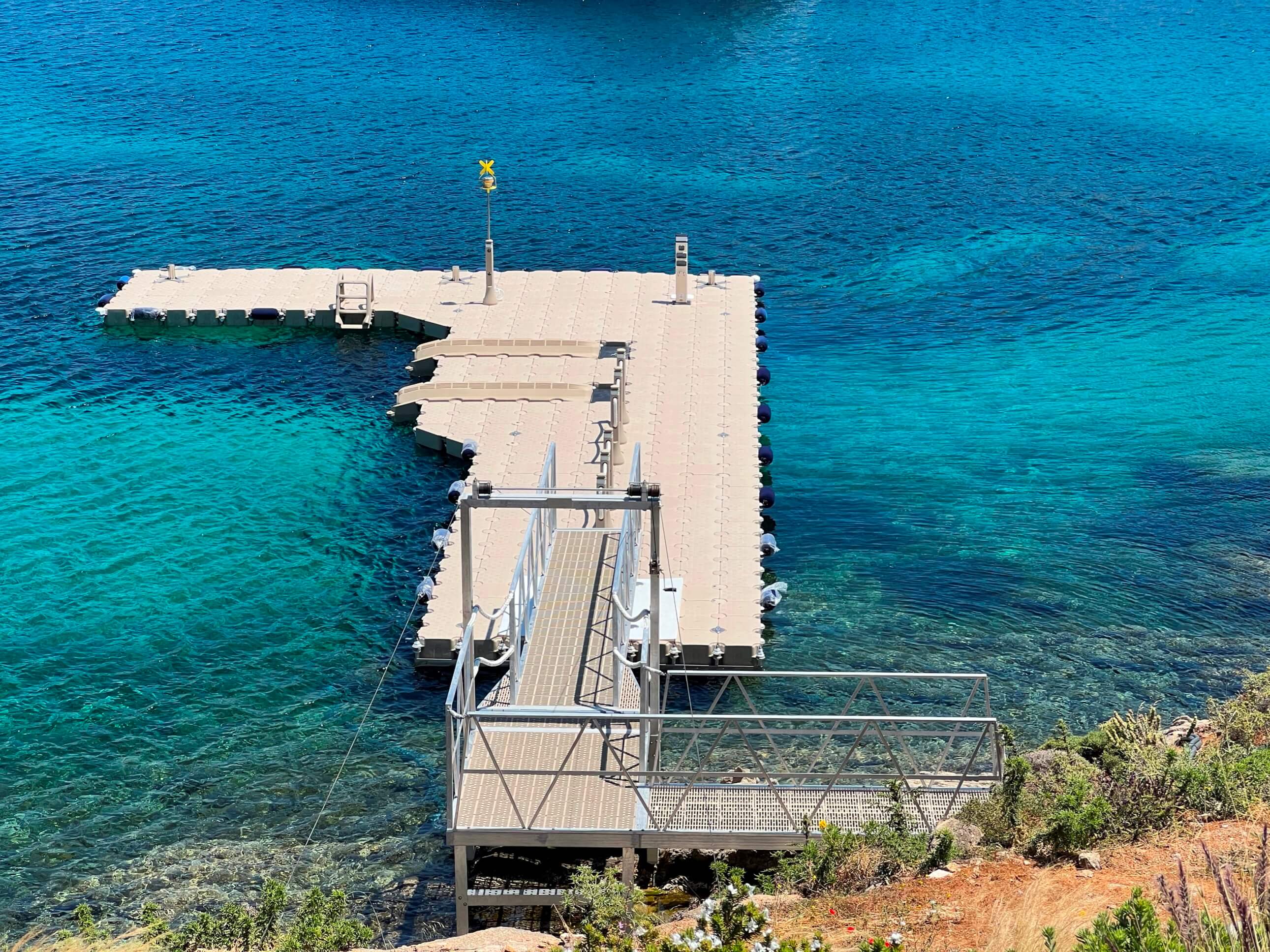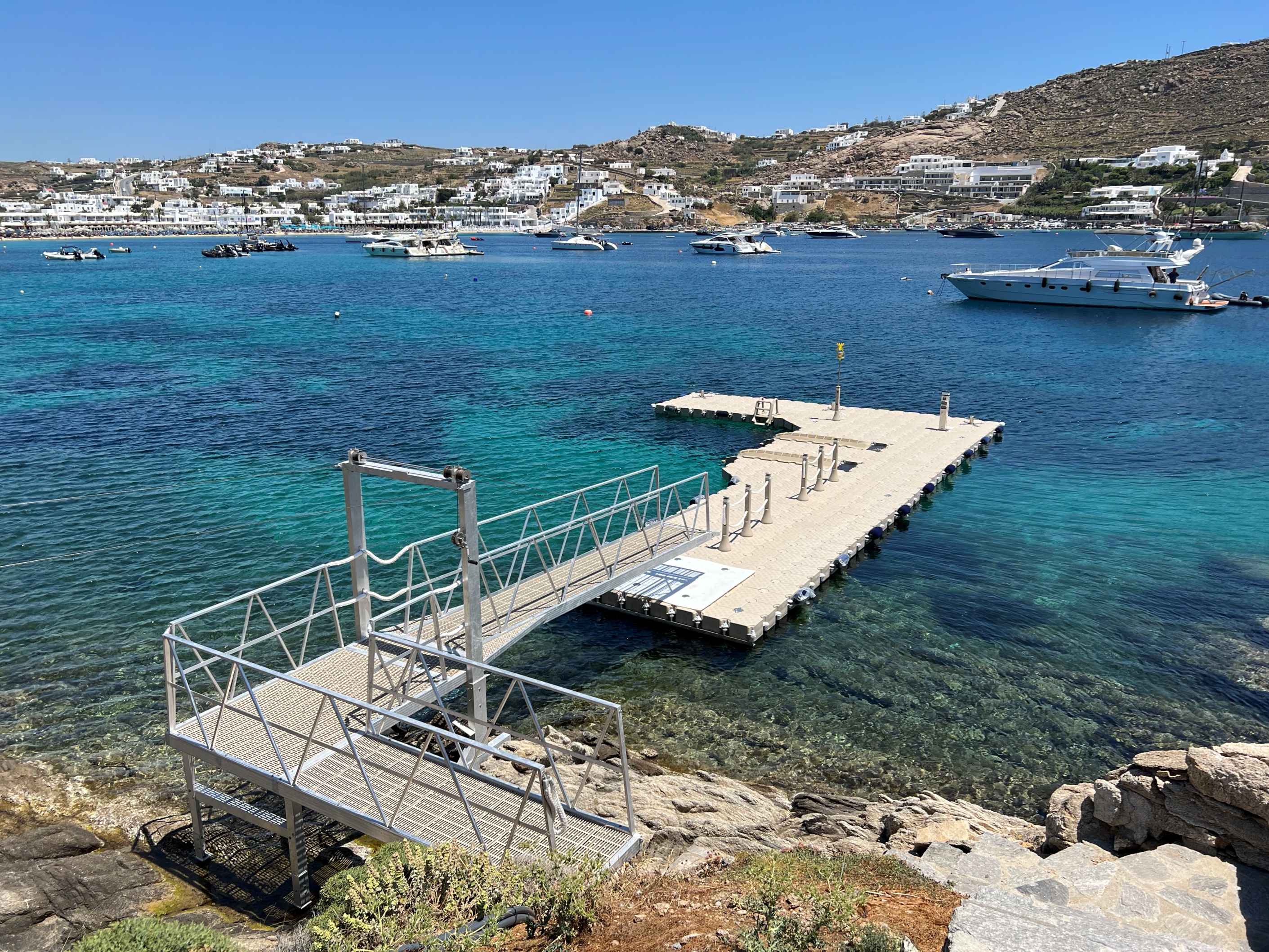 Εγκατάσταση πλωτής εξέδρας για ιδιώτη στον Ορνό, Μύκονος.