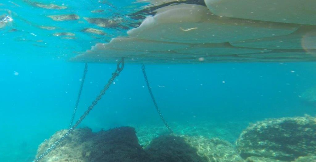Βαρέως τύπου αγκύριο, για χρήση σε ακραίες καιρικές συνθήκες. Μονοκόμματος άξονας από ανοξείδωτο ατσάλι 316 (μοναδική πατέντα) που έχει την επιθυμητή μορφή του ανάποδου «ρ». Πρόκειται για συμπαγές μέταλλο κυκλικής διατομής, διαμέτρου 25mm. Ασφαλίζει με δύο παξιμάδια 35mm. Διαθέτει τεφλόν στα σημεία ένωσης με τα αυτιά των κύβων για καλύτερη εφαρμογή και αποφυγή φθοράς. Χρησιμοποιείται για την πρόσδεση της πλωτής κατασκευής.