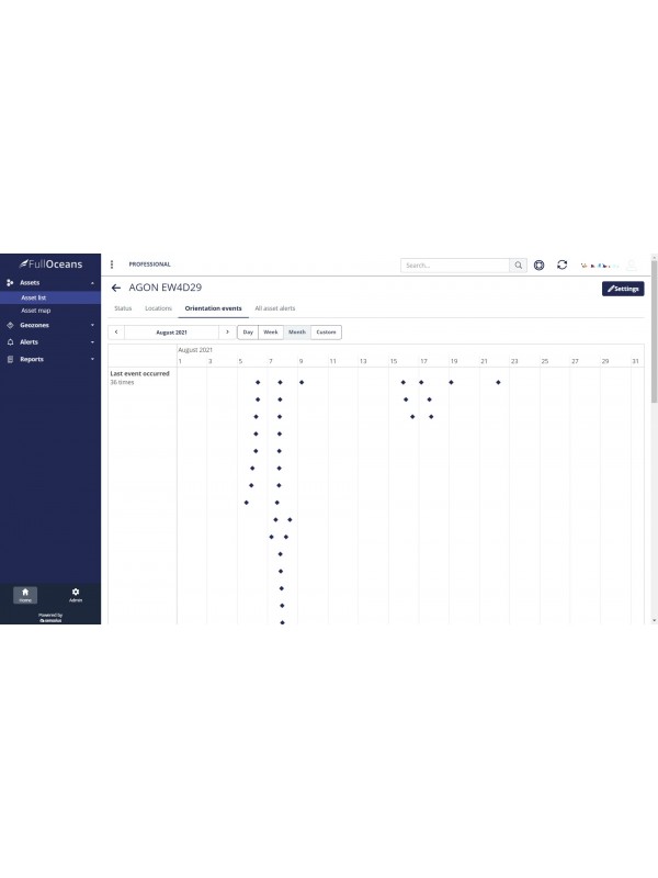 Γεγονότα προσανατολισμού · Σημαντικές αλλαγές στην ταλάντωση(πάνω από 50 μοίρες, άλλες ρυθμίσεις διατίθενται κατόπιν αιτήματος) · Ειδοποιήσεις (email) κατά την επίτευξη μιας καθορισμένης διαμόρφωσης |