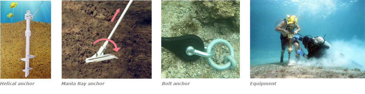 Our company applies the innovative and most up-to-date eco-mooring system, using the following anchors: